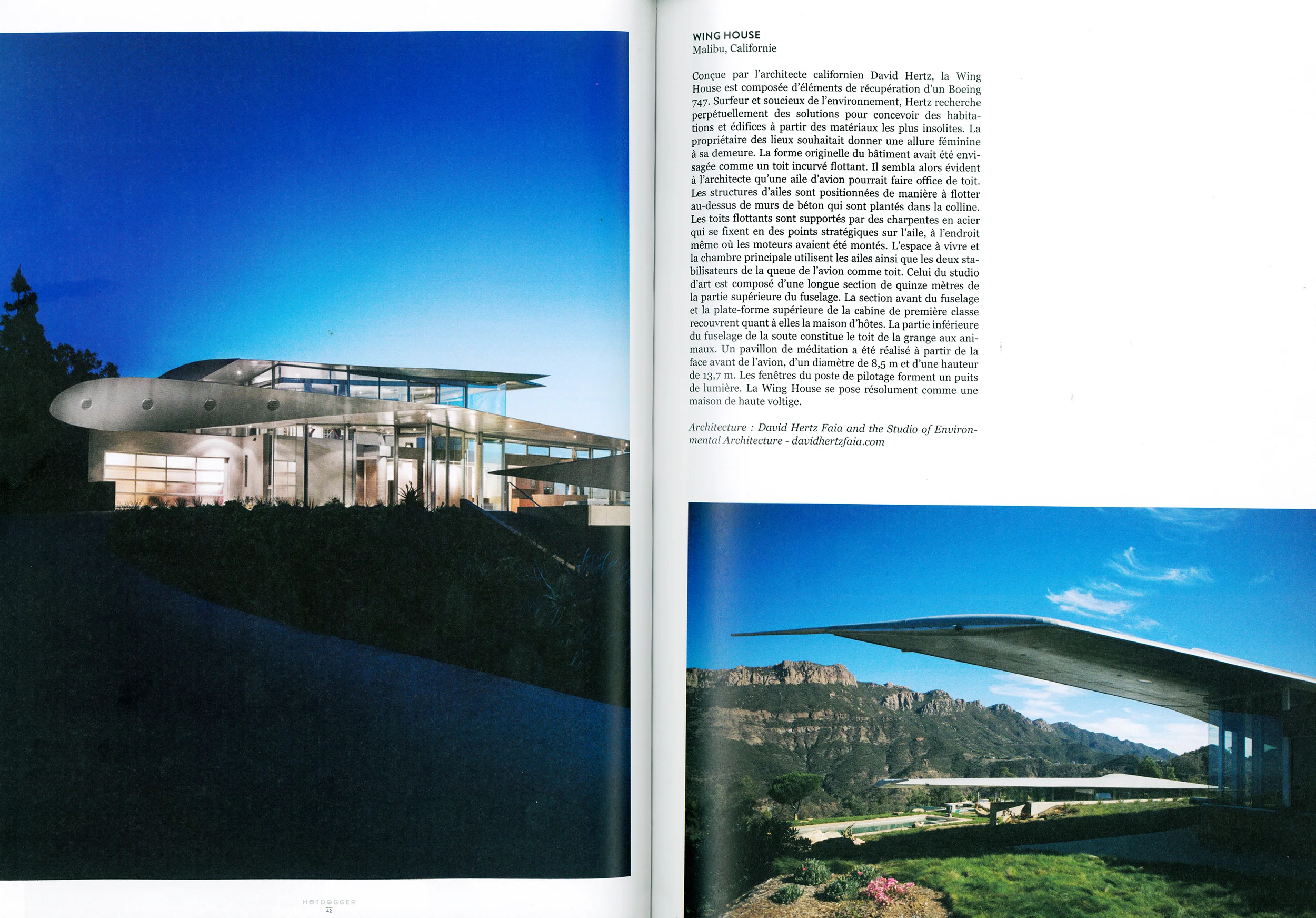 747 Wing House featured in Hotdogger magazine May 20 Written By David Hertz The 747 Wing House is featured in the current issue of Hotdogger magazine from France. David Hertz